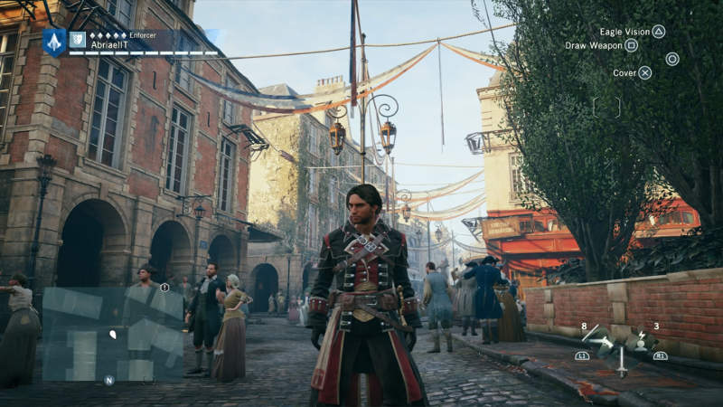 我操纵着游戏,在巴士底狱、凡尔塞宫、塞纳河、巴黎圣母院这些地方奔走,与路易十六、拿破仑、罗伯斯庇尔交谈。有那么一刻,当我在三级会议的会场外面,被皇家士兵拦住,一辆双轮马车擦身而过,扬起一片灰尘。我的头顶突然落下一阵水滴,那是洗衣女工晾塞在二楼窗外的破衣服。我不禁有点恍惚,仿佛身处1789年的巴黎。